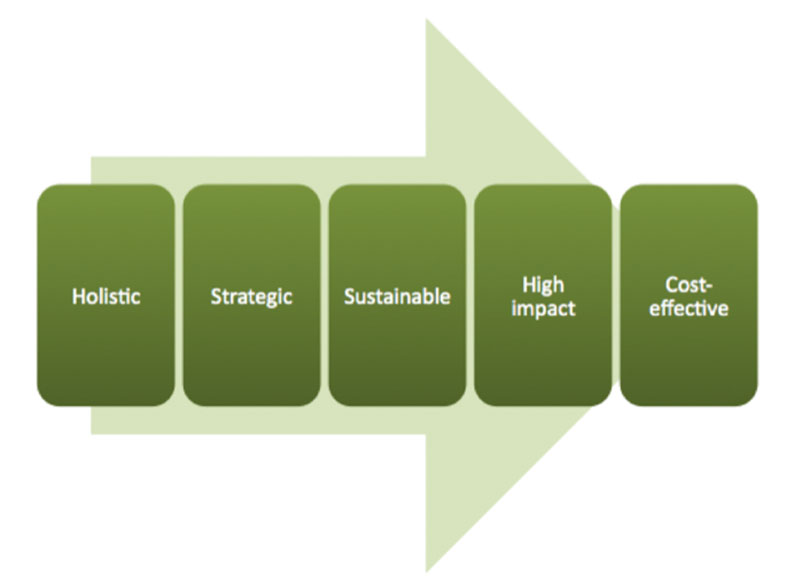 High impact for minimum resource allocation is achieved through prioritising areas for attention and customising the strategies that are developed.